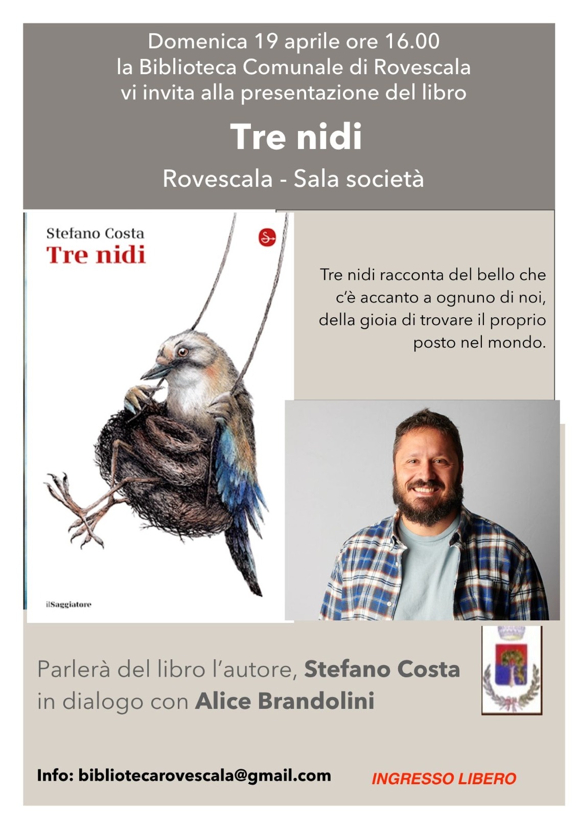 La Biblioteca Comunale di Rovescala Vi invita alla presentazione del libro: Tre nidi.