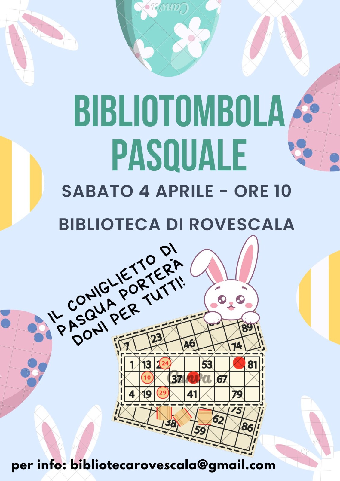 Sabato 4 Aprile,a partire dalle ore 10, presso la Biblioteca Comunale, si terrà una tombola di Pasqua in Biblioteca: il coniglietto di Pasqua porterà doni per tutti!